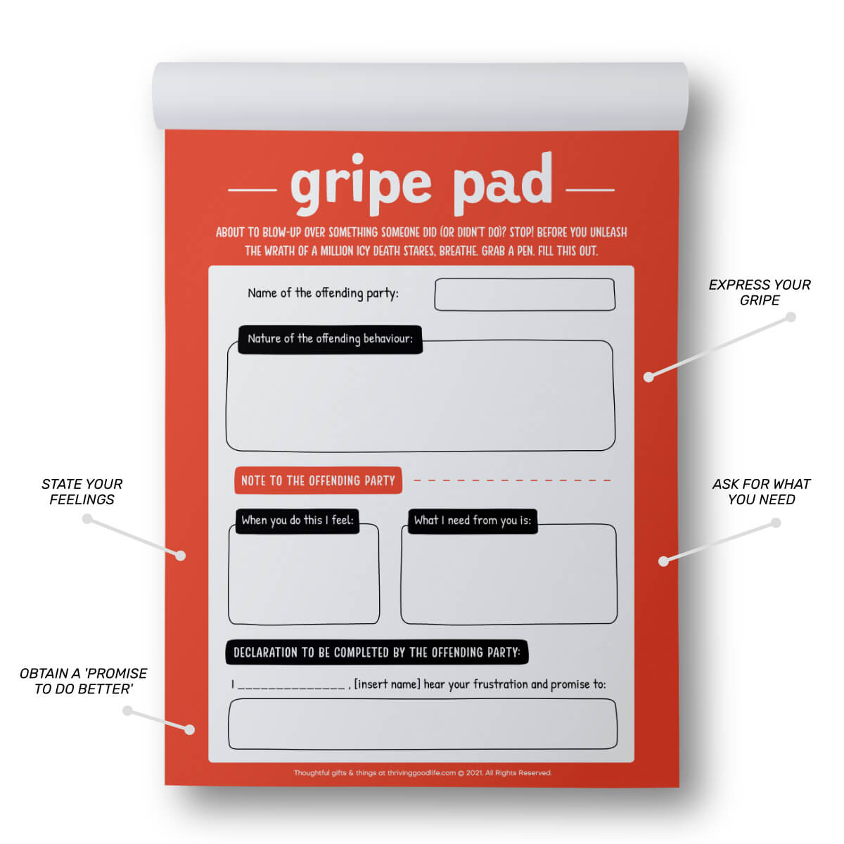 Once you’ve filled in your parts, hand your gripe to said offender. They sign the declaration promising to do better, and all is right with the world.