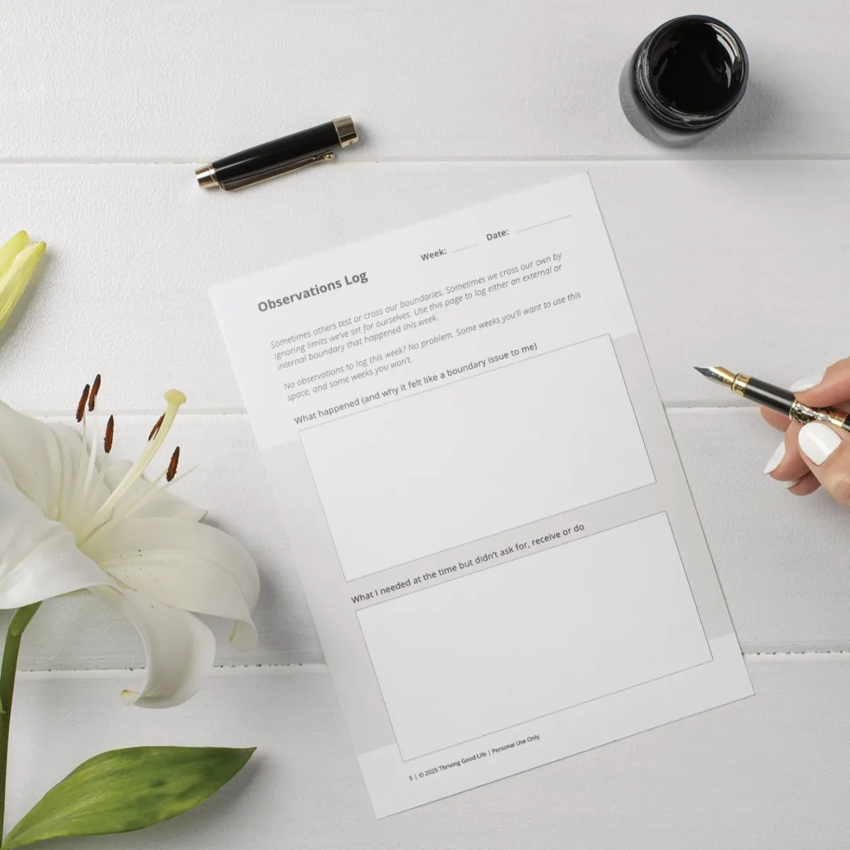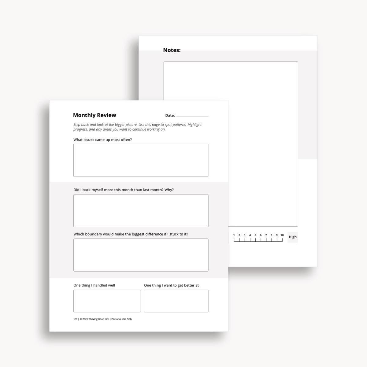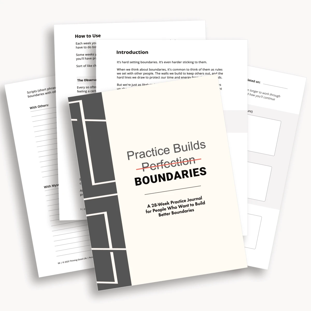 Just like in a gym, you get stronger by doing reps, not by binge-watching videos on the “perfect form” while never picking up a dumbbell. When someone keeps crossing the line, you get better at holding your ground by practicing how you respond, not by endlessly replaying it in your head. This printable journal gives you instant access to start your practice today.